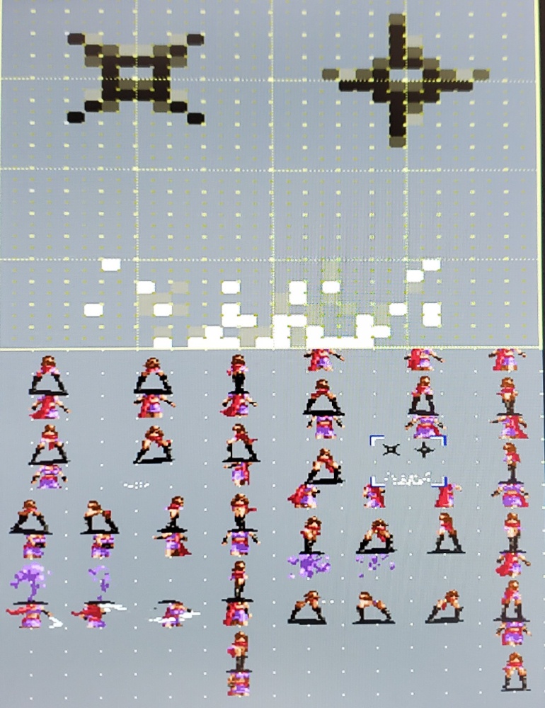 自機を表示したら次は弾を撃ちたくなりますよねぇ😆試しに手裏剣を出してみましたが、上下にスクロールすると弾がついてくるんですよね(笑)BGをスクロールする場合、移動した分のY座標で弾のY座標も補正しないと駄目みたいですね…🙉パターンがXSPで最適化されてます🙀