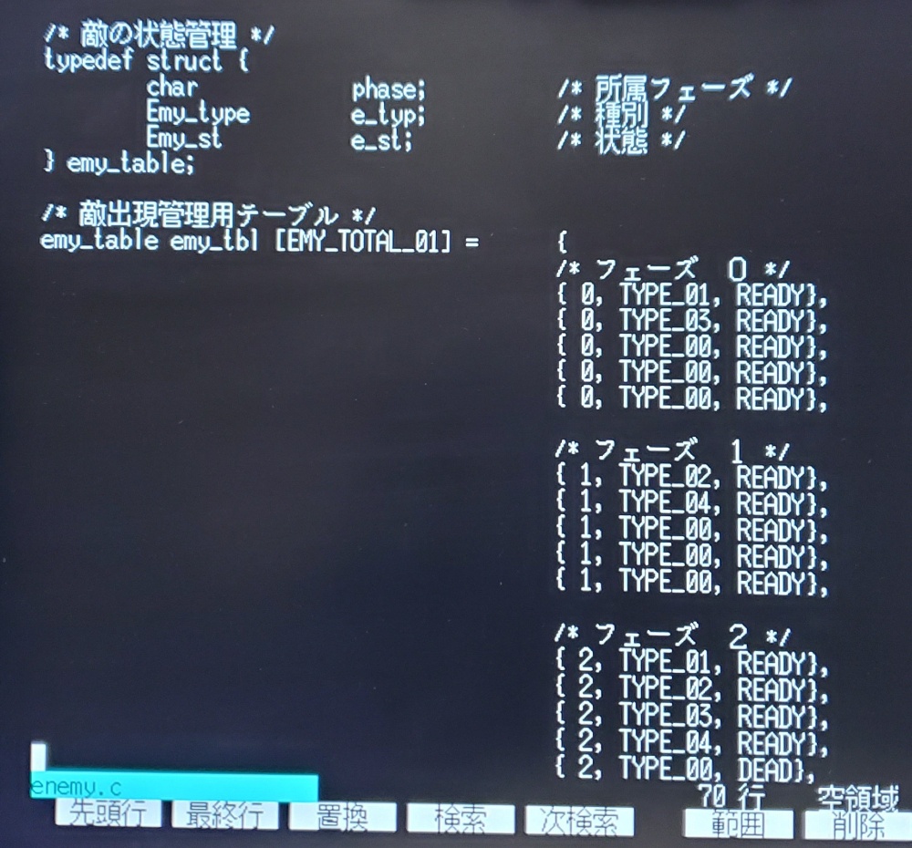 敵の出現パターンですが、ランダムや際限無く出て来ても面白いかもしれませんが、フェーズにわけてフェーズ1は雑魚5体フェーズ2は雑魚3体と中ボスフェーズ3は空中敵10体などとした方が演出しやすいですし、ドラマチックな気がします…敵の管理テーブルを持ちますかねぇ😾