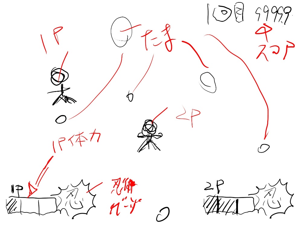 EDの使い方もある程度理解でき、一度何を作るかスタートに立ち戻りました素人の私がいきなり大それた物は作れません・一画面(スクロール無し)・弾をひたすら避ける・キャラクターを選べる・必殺技がある・協力プレイ?まずはこれを目標に製作開始です仕様書(笑)