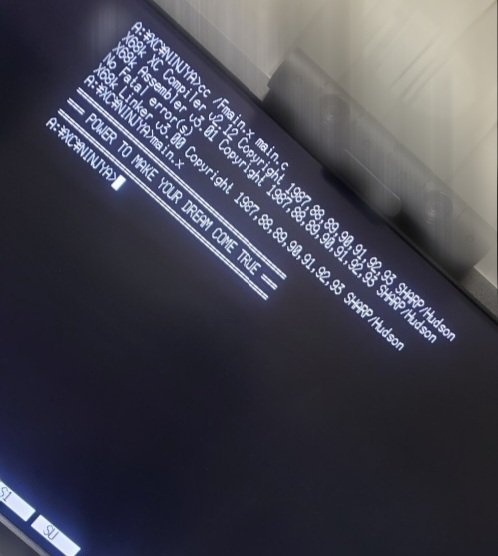 まず、とにかく何でもいいのでコンパイルしてみる事にしましたここはやはり定番の「Hello, world.」でしょうか?否っ!X68Kは、やはりこれです初めて自分の愛機から文字が出た時は流石に感動しました「昭和のマイコン少年」が「令和のマイコン初老」になる瞬間でした