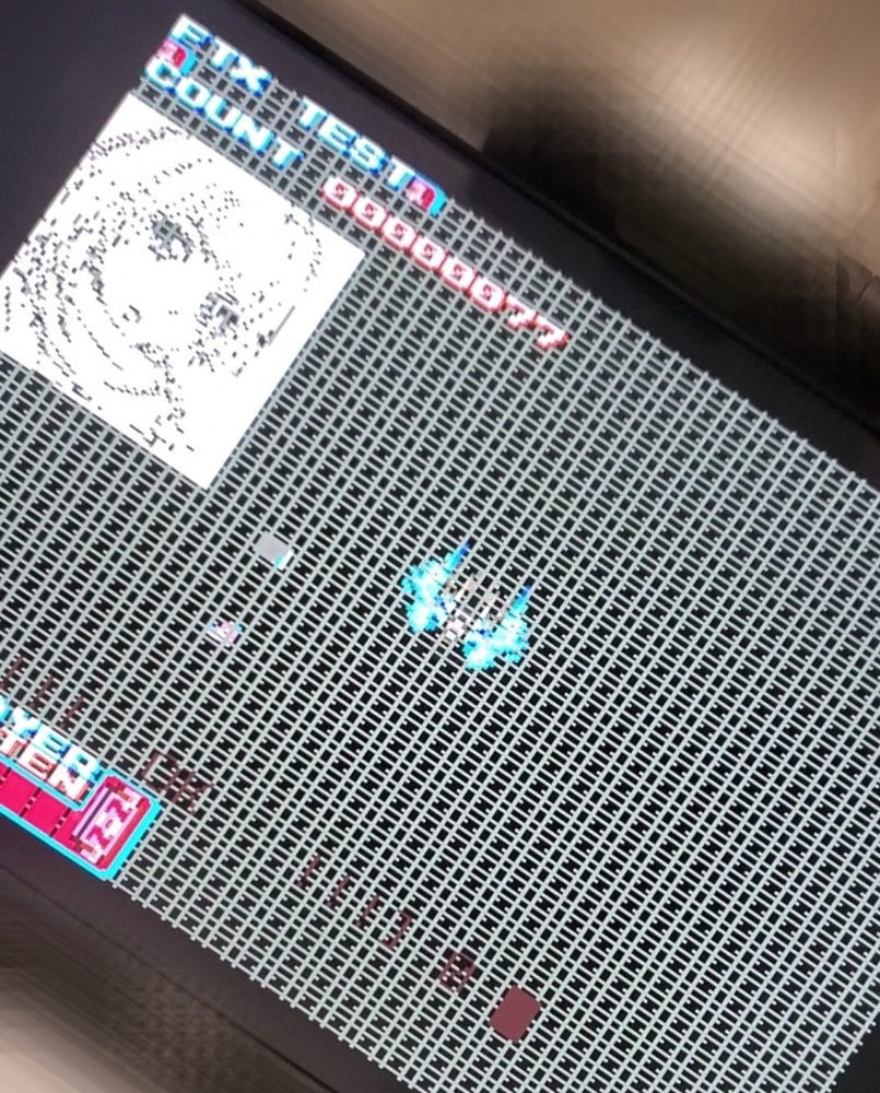とにかくサンプルコードを参考に、見よう見まねで自分のプログラムに組み込んでみる出たっ!何だこのでかい自機スプライトはっ!しかも歪みなくサクサク動くしこの「XSP」エンジンさえあれば、アーケードゲームと同程…いや、それ以上のゲームが創れるのかっ!?