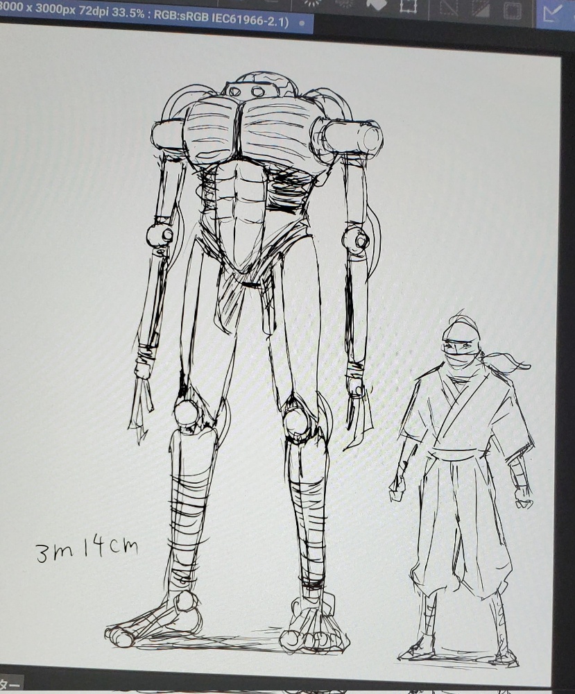 とにかく思い付くままにラフを書いてイメージを固めます😸使うかは気分次第(笑)⑥【カカシ(NN-003)】神楽インダストリアルと忍の里が共同開発した初の量産型忍者ロボット。不安定ながら、その力は忍者4人分に匹敵する。